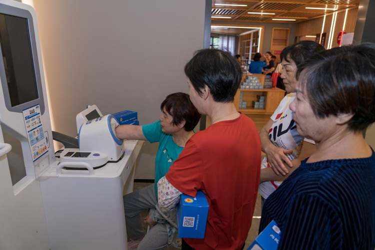 9月1日,社区居民在浙江省金华市金东区新时代文明实践中心免费测量血压。新华网 钟奕 摄