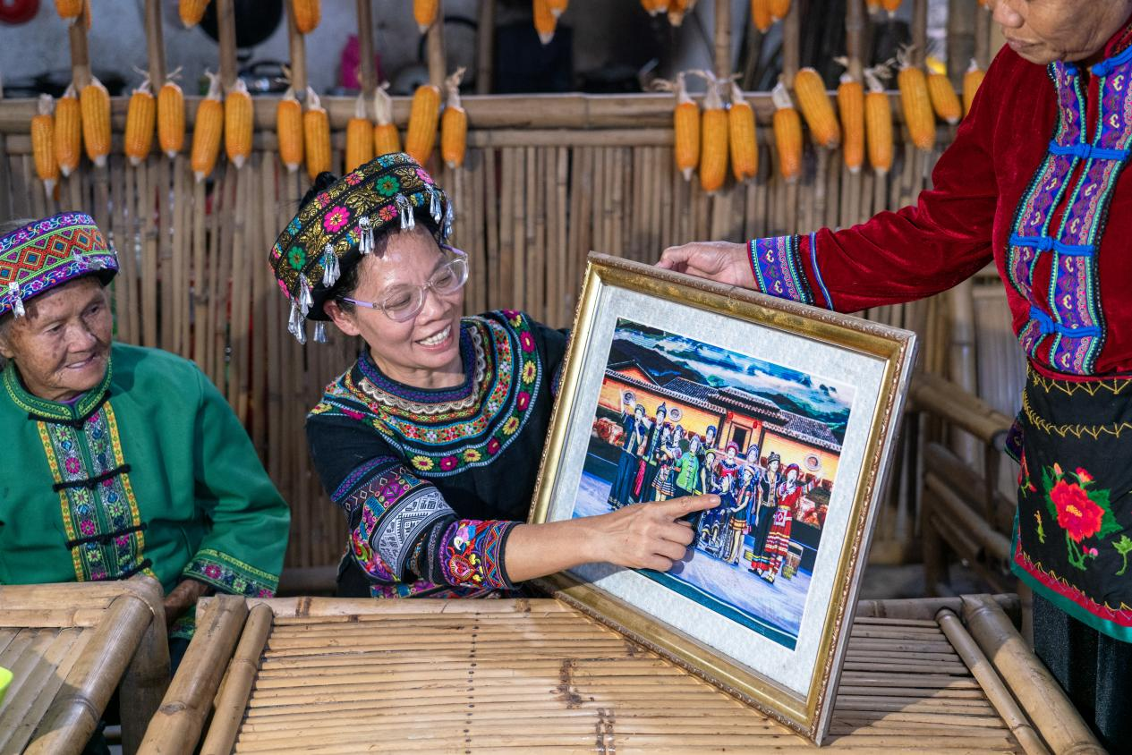 10月31日,在广西南宁市上林县镇圩瑶族乡古登村,第七届全国道德模范称号获得者蓝连青为“文明中国”主题采访报道组讲述自己照顾帮助家人、向邻里伸出友爱之手的点滴故事。新华网 钟奕 摄
