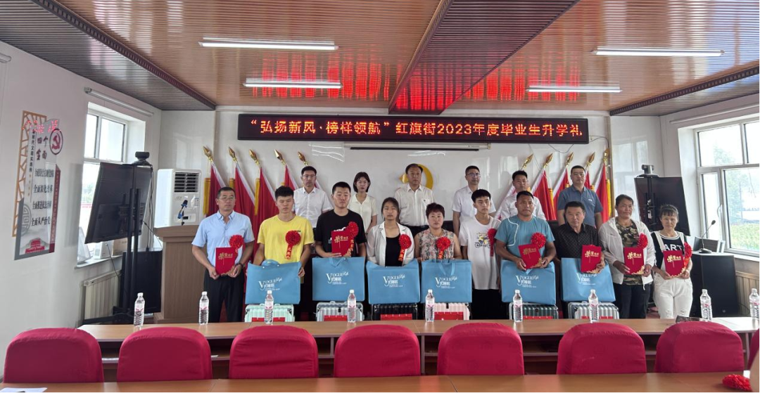 双辽市红旗街举办“弘扬新风·榜样领航”2023年度毕业生升学礼仪式。