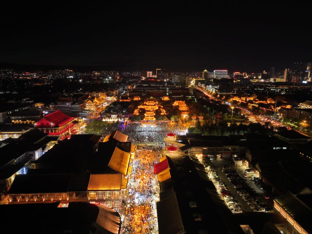 塞上老街夜间游人如织。呼和浩特市玉泉区融媒体中心供图