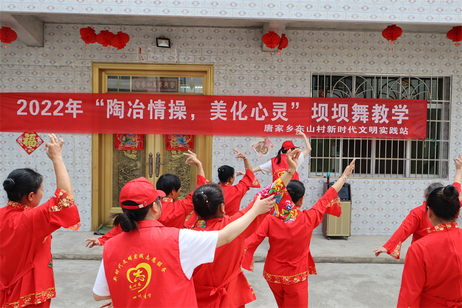 东山村新时代文明实践站志愿者开展“陶冶情操,美化心灵”坝坝舞教学活动。唐双超 摄