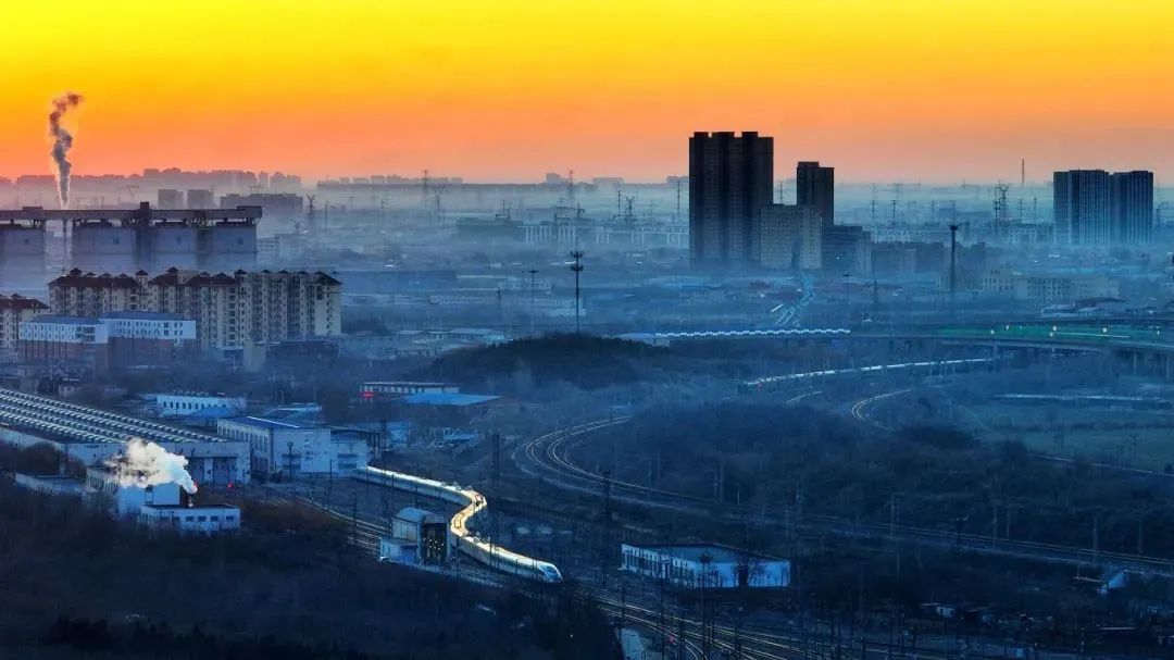 当晨曦的第一缕阳光穿透薄雾,金色的阳光洒在蜿蜒伸展的铁路线上,沿途的风景如画卷般缓缓展开。
